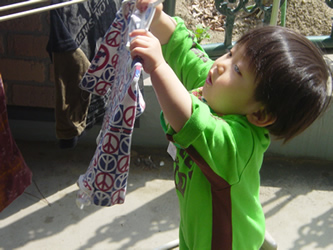 最近やたらグズってるリーたん具合でも悪いんじゃないの??って思ってしまうほど。。。なので今日はボード時代のママの友達からベビドで頼まれた物を朝から買いに。。。砂場着を2枚(双子の女の子ちゃんだから2枚)と色々。。そして早々帰ってきてから洗濯を干し干し↓↓ベランダが大好きなりーたんはそっせんしてベランダへ。。そしてお手伝い。。でも家に入ろうとするとイナバウア~に泣き叫んで連発。。今日はつこりんママから教えてもらったおもちゃ箱が届いたよ~~パクりまくりのママ。。さっそく物色。。それから昼寝→フウト宅へGOボウケンジャ~ショ~をやってくれ、りーたんが夜泣きしなくなるようリラックスできるようにピアノを弾いてもらったり。。。帰ってきて何だか眠いようなので抱っこしてたらねんねしてしまった。。ここ最近夜泣きが何十回と半端なく、かなりママやられてます。。今日はどんなサイクルになるんだろう恐怖~~~。もうママは良いけどいい加減この月例になって寝れないのはかわいそ~っていつもいつも思ってしまうな~~。。早く脳みそおかしくなるほど寝かせてあげたいよ~~~
