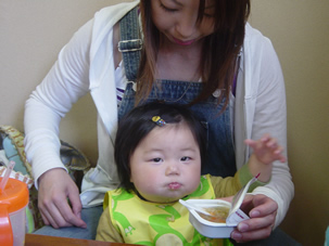 今日は何にも無くOFF??なんて余裕こいてたママ。。でも朝にあさひちゃんママからが入り、ホンポに行くから~~っとお誘いが。。。では緊急時のBFとか買い足してないから行こう~~~っとうちに来てcあさひちゃんは離乳食を。。あさひちゃんは離乳食は2回食期。。なつかし~ね~。。↓↓おかゆを大さじ1杯。。ママからあ~んの待機中。。その横でりーたん&ママは朝からお菓子を食べまくり。。そして興味津々になってきたりーたん。。おいおいりーたんはもうそんな時期じゃないよ~~~そしてホンポへGO最近りーたんのお手手の甲が乾燥しすぎて赤く湿疹が。。。アンダームやすべすべみるる等の物を地味に付けてるけどイマイチ効果が薄く・・・・ホンポでママは何か良いローションでも無いかな~~っとちょっと前から気になってた超お高いオレンジ色のベビースキンケアシリーズ(名前は解からないけど・・)を買おうか悩んでたママ。。 するとあさひちゃんママが『この高いの買って効果が無かったらショックじゃないですか???』っと。。。ママ『確かに・・・・』あさひちゃんママ『なら中田(掛かり付けの小児科)に連れて行っちゃたほうが早いですよ~~』ママ『なるほど』帰りに順番を取ってきて一旦自宅待機の我ら親子。。っと言う事でこれから小児科に行ってきま~す。。