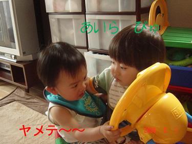 今日はマブダチの創くん&つこりんママが電車に乗って来てくれましたありがとね~~~今日は31度と超暑い暑い二人してランニングBOYSで過ごしました。。やはりりーたんは創くんにちょっかいばかり出して~~^創くんは絶対に嫌がってるはず。。ホントにゴメンね~~友達やめないでね。。 写真でも解かる様にこんな感じでいっつも創くんにちょっかいだし捲くり。。でも創くんもりーたんも元気モリモリで楽しく遊んでました。。やっぱりうちはかなり暑いそうです。。暖房も入れてないし窓も前回に開けてたのに創くんやりーたんはランニングでも汗ばんでました。。こんなうちで良ければまた遊びに来てね~~お待ちしておりま~す