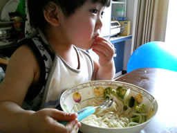 最近ママはブログをさぼり気味。。。ついつい・・ってやつです。。ここ最近りーたんはヘルパンギンナ~と言う喉に水泡が出来てしまう少々流行気味のウイルス&風邪のWでかかりかなり食欲がいつもにも増して食べなくなってしまいました。。今はすっかり良くなりましたが。。。いっつもは野菜4口位しか食べなかったりーたんも昨日位から少しづつ食べだしてきてママもご満悦。。最近のお気に入りは麺類でなかなか好調に食べてました。。今日のお昼はサラダうどんいっつもはりーたんとママは食事の時間が違いましたが、これからは出来るだけ二人で揃って食べようと思ってます。。そのほうがりーたんも食べてくれるのかな??と。。。ただ、りーたんは今回良かったから次回も・・・・・って期待してしまうと必ず期待ハズレになってしまうのでま~~あまり期待してませんが。。。お風呂上りのりーたん、 いつもと髪型を変えちょっと7:3のリーマンヘアーにしてみましたここ3日風邪で熱が3日続いたのでお風呂には3日ぶり。。超ご機嫌ちゃんかるく手足がメッチャ汚くなってました。。のでママはスーパーウォッシュウォッシュ気持ちよかったね~~~~。最近はまたいつもどおりのりーたんに戻りAM9時からお外で元気良く遊んでます。。