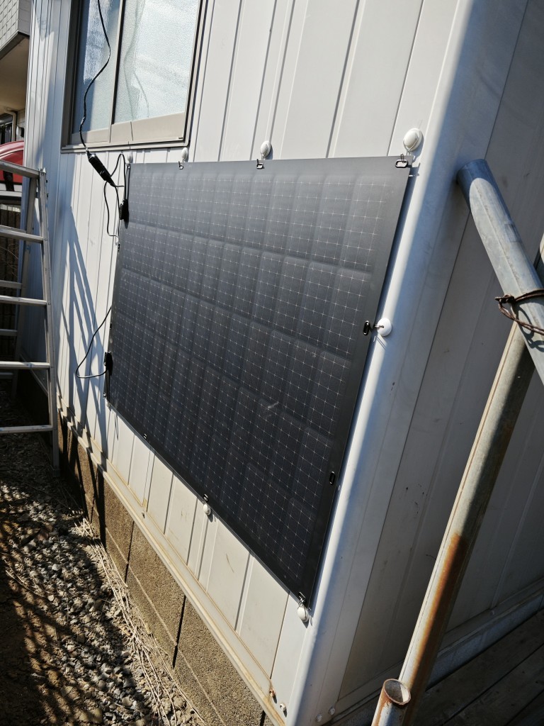 ポータブル電源をなんとか有効活用したい『もじゃりポミ』ですガレージの電源に追いやられたAFERIYの2kwh電源ですが毎回自宅に持ち運び充電しておりました。かなーり面倒なので今回フレキシブル太陽光パネルを購入しガレージもオフグリッド化に挑戦です↓以前のブログもよろしければご覧ください↓大容量ポータブル電源買ってプチオフグリッド環境つくってみた完成はこんな感じガレージを一切傷つけることなく完成まずは下準備このポタ電の端子、アンダーソンコネクタの作成です圧着ペンチはなんでも良いと思われますが、アンダーソンコネクタは抑え溝があるこのペンチがおススメケーブルはこれ↓3475 エーモン工業 ダブルコード コードサイズ:2sq×6m(赤黒) amonガレージの穴に通して外へ外でMC4コネクタも作成します廉価版 新型 ソーラーパネル 接続ケーブル用 MC4 型 コネクター 10組セット DIY 太陽光パネル ソーラーパネル 発電装置太陽光パネルはフレキシブルならなんでもOK今回は300Wモデルを購入今回のポイントセリアで売っている強力マグネットフックをつかいますこんな感じでひっかけて終了ガレージは鉄なのでこのプレイができますが、ベランダだったら結束バンドで対応できます。太陽光パネルは設置位置が超重要ですが私の今回の位置は70W程度しか発電しませんでしたまぁ見た目重視&手間かけたくないのでこれでいいかなーっと#diy#太陽光パネル#フレキシブル#ガレージ