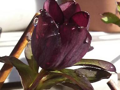 昨夜の雨は明け方にはあがったのかな?朝からいいお天気で、お庭がキラキラしてました。出勤前、車のエンジンをかけるために外に行くと、なんとチューリップ???チューリップのように見えるこのお方。我が家のもう一鉢のddブラック系でございます。。。日中の暖かさで、帰宅してきた時には少し開いてました。画面右下に見えるのが、朝のチューリップでございます。。。完全に開いているお花のほうも・・・ちょっと暗くて見づらいのですが、先日のddブラック系とはまた違った感じのお花です。花弁がしっかりしてるかな?その他、シングルのクリスマスローズもいろいろ咲いてきました。結構撮ったつもりが・・・きれいに撮れているものは少ないわ・・・まだまだ、花芽が出てきたばかりのクリスマスローズもあって。しばらくはお花が楽しめそうです♪