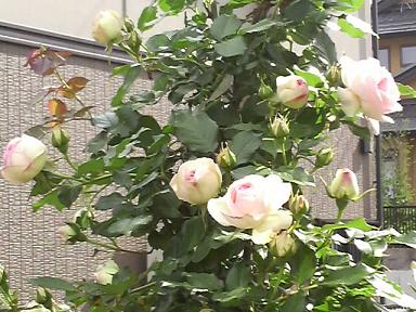 こんばんは。今日も暑かった~。昨日の真夏日ほどではなかったけれど。さすがにこの時期の真夏日はきつい。明日以降は暑さも落ち着くとか。暑かったり寒かったり。体がついていけない・・・庭のバラ。暑さに慌てて咲き出したようです。ピエール・ド・ロンサールの蕾も開くのが早いです。今日の夕方には、この画像より開いてました。。。アンブリッジローズ。この色が好きだなぁ。開きかけの中心のまん丸も好き(#^.^#)クロッカスローズ。今年は少し黄色いかな?蕾があがってきたばかりの頃。虫にやられたみたいで、新芽の先が朝いきなり萎れていた事がありました。切ろうかどうしようか悩んで、結局そのままに。最近復活。先端は上を向き・・・折り曲げ剪定のように枝が増えてたわ