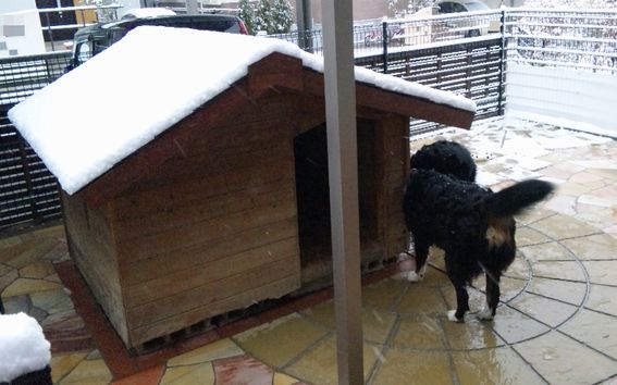 今朝、起きたら雪が積もっておりました。本日雪の中お出かけされたミナサン、ご苦労様でした。母ちゃんはラッキーにも今日はお休みだったので、家ででろ~んとしておりましたとさ。 さぶかったでし~ だねだね~。母ちゃんが外に出たときは地面の雪は解けておりましたが、犬小屋の屋根の雪はこの時間(23:40)もまだ残ってます。 地面に雪が無かったので、小屋の屋根の雪を無理矢理落として食うもこ。さらに… 落とすのが面倒になったのか、屋根に手をかけて直接食ってた そこまでして食うか、もこよ…。そんなに美味いのか?でも、いろんな不純物が混ざってるだろうからあんまり食うと腹をくだすぞ~!! だいちは手にとって「はいど~ぞ♪」ってあげると食べました。あぁなんてソフトなオトコちなみにくわえてるのはお気に入りのおもちゃです。 夜は、お向かいのひ~ままと鍋焼きうどん食べに行きました。あぁ温かいものって美味いで、その後ケーキを買って帰ってお茶しましたよあ、散らかったままだった ま、気にしない気にしない←ダメだと思うけど…。 ←ランキング参加してます。だいちをぽちっとおねがいします。 母ちゃんのホンネ。 明日も休みだといいのに…。