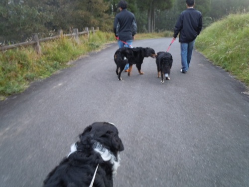 と、言う訳でドキドキ初めてキャンプ2日目。 朝、キャンプ場を散歩。もこはえみぴかパパにリードを引いてもらってご満悦後姿なので顔見えず… その後、朝食を~準備中にあんこが隣のサイトに泊まってたお兄さんに恋をしました。 この頃はまだあんこは警戒心がとても強く(初めての人限定)特に男性は警戒していたのに、このお兄さんには全くそんな素振りを見せず(イケメンだったせいか?)自ら寄っていくという奇跡に近い行動を見せました。 しかし、あんこの恋も実るはずも無く…だって彼女さんと来てたんだもん(笑)朝食を済ませた後、キャンプ場のスタッフさんに勧められた所へお出かけする事に相成りました。 キャンプ場は一応熊本だったのですが、ほぼ宮崎との県境だった為、結果宮崎観光となったのでした。 しかし、編集した写真の中に高千穂峡のものが無かった失敗した…。なので次へ参ります。 お次は、天岩戸神社。 そうだよ。よく分かってるじゃないかキミタチ。カミサマが怖かったのか、3ワン共(特にだいち)大抵、初めての場所だったりすると、本能でマーキングなんかしてしまったりするのですが、全く一度も神社内ではする事無くお利口にお参りできました。(凄い!) 中まで連れて行ったけど、誰にも文句言われなかった。逆に「よく来たね~」って言ってもらった。 この後、この神社の奥の方に有る「天安河原」まで行ったのですが、あまりにもブレた写真しかない為、掲載断念。結構距離があって大変だったけど、見ず知らずのミナサンの温かい声援のおかげで頑張って行って来ました。 不思議だね~。いつもはどこ行っても大型犬ってだけで敬遠される事の方が多いのに、今回はどこに行っても歓迎ムード。嬉しい事でしたが、経験したことが無かった為、ちょっと困惑気味でした(汗) えみぴか家の長女え~ちゃん。幼き頃にだいちに追いかけられ犬恐怖症に…しかし、このキャンプの時は快く同伴OKしてくれたのありがとね。おかげでいい思い出ができたもん。 3日目。最終日の朝は周りが見えないくらいの霧で始まりました。 いつもワタシが一番後ろを歩いてたから、みんなの後姿ばっかりだったわこの日はこの後テントを片付けて帰路へ~となりました。 楽しかった2泊3日。あっという間に終わってしまいました。←ランキング参加してます。3ワンをぽちっとお願いします。 ほら、あんこから寄って行ってるでしょその横でちょっとオカンムリなもこ。 この1ヵ月後にもことお別れする日が来るとはこの時は誰も予想すら出来ませんでした。もこ今頃何してるのかな?こっちは本格的な夏だよ。そっちは快適かな?お盆には帰ってくるよね?待ってるよ。