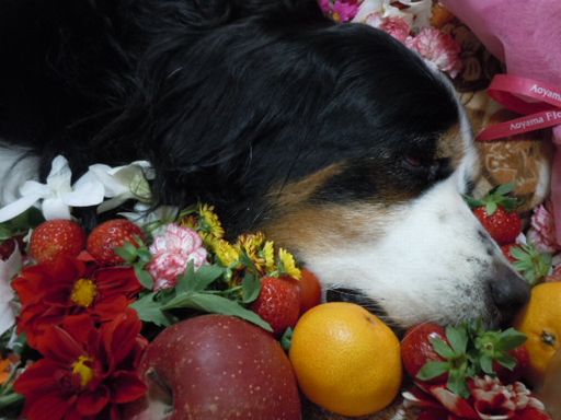 ようやく落ち着いたのでご報告させて頂きます。11月8日午前6時半過ぎにもこは虹の橋へと旅立ちました。その時はとても静かにやってきて、もこを苦しめることなく旅立たせてくれました。最後を看取ったのはだいちでした。 いつもこんな顔して寝てたからきっと苦しくなかったよね、もこ。 ホントに眠ってるだけみたい… この日は、もこが逝ってしまった事をミンナになかなか知らせることが出来ずにいた母ちゃん。ようやく連絡したのは夕方。お隣の花ちゃんママだけは朝、父ちゃんが会社の人に「遅れる~」って電話入れてる時にチラッと聞こえたらしく、お昼にだいち達とお庭に出てるときに「ずっと気になっていた」と話しかけてくれたので事情をお話しました。 みんなにメールした後ホントにたくさんの方々がもこにお別れをしに来て下さいました。 たくさんのお花や大好きな美味しいものに囲まれて幸せだね。お前って奴は…。こんなに一杯有るんだから起きて食べなきゃ損なのにね。バカだなもこ。 母ちゃんがお供え入れながらポツリと「イチゴだけ無かったんだよ」って言ったらえみぴかちゃん家がすんごくあちこち探して手に入れてきてくれた。母ちゃんそれ受け取ってボロボロ泣いちゃったよ。もこ、お前ホント凄いよ!!母ちゃん自慢だよ。こんなにしてもらえるワンなんて滅多にイナイぞ~。見てごらんお花だって立派なのがこんなに沢山届いて入りきれなかったんだぞ。しかも次の日もその次の日も届いたんだよ。父ちゃんとフタリでビックリしてるんだからね。 翌日(9日)も家から送り出す前に顔を見たいからって、いつもフードを買わせて貰っているお店のミナサンも来てくれました。火葬場にも来てくれたんだよ。お骨も拾いたいって言ってくれて待っててくれたけど、どうしても来客があるからって間に合わなかったから全部終わってその足でお店に挨拶に行かせて頂きました。 母ちゃんが習ってるワンコの食育のセンセイからも届いたよ。もこのイメージで作ってくれたんだって!!凄いね~。で、ちょっと見えないけど、その向こうにも沢山お花が有るんだよ。 昨日(10日)はラルゴのママがラルゴ・ロッキーを連れて(ラルゴは父ちゃんが是非にと言った)来てくれたね。ちょっと写真が間に合わなかったけどちゃんと載せるからね。可愛いお花と心のこもったオヤツを持ってきて下さいました。ありがとう本当にウレシイね。 もこはホントに幸せ者ですね。こんなに沢山の愛に囲まれて旅立つ事が出来たのだから…。もうその身体に触れることが出来なくなってしまったけれど、火葬をしてくれた葬祭の方が「この骨のカンジだとキチンと天寿を全うして逝ったんだと思います」って言ってくれたんだ。だから母ちゃんはとってもホッとしたんだよ。子宮蓄膿症や肥満細胞腫でオペったりしてキツイ事もあったけどそれを乗り越えてのことなら大したもんだよキミ。 何かなに書いてるのか分かんなくなってきちゃったから今日はこの位にしておこうね。←もこにお疲れ様のポチお願いします。 今年の誕生日の写真です。このキラキラおメメの向こうにはさて何があるでしょう…。 もこにたくさんの愛をミナサマありがとうございました。ホントに言い表せない程に感謝しています。これからもだいち・あんこ共々よろしくお願い致します。