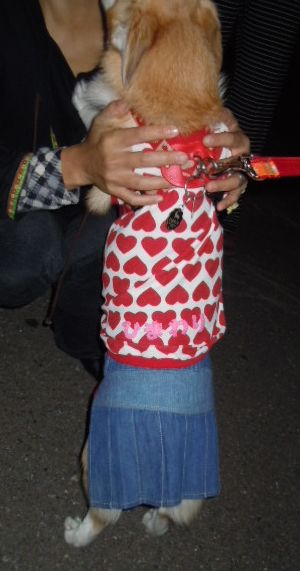 これまたチョイと前のお話ですが、母ちゃんがたま~に行くペットショップのP○ってお店での事。どうやらイヌネコグッズの取り扱いを縮小する様で在庫処分みたいなワゴンセールをちんまりとやっておられましたのさ。で、当然ながらせっせとワゴンの中をあさくっておりました所、なんともお可愛らしいワンコ女子用のおパンツとスカートのセットを発見「こりはひょっとしたらあんこに入るかも~」なんて思いつつ2つ購入。あ、それとだいちに使えそうなマナーベルトも発見したのでこちらもお買い上げ何と3つも買ったのに300円(1つ100円って事)これなら失敗しても泣かなくて済むわ~って意気揚々と帰ってきたのでありました。 で、 無事にひまわり村にお嫁に行きましたとさつまりはあんこにも全然入らなかったんでし~あ、ハートのお洋服はひまわりの自前。 で、何が偶然でスゴイのかって言うと 何がって、このひまわりと一緒に写っているレディーは、ひまわり村のご家族ではなくご近所のえみぴかちゃん家の長女え~ちゃん。それだけではありませんよ~。説明すると、ひまわりの着ているスカートはらんらん家から、ハートの服はそのスカートに合いそうだと言ってひ~ままちゃんが偶然着せてきたもの。そのスカートを見てえみぴかちゃんが「あら、え~ちゃんが同じようなスカート持ってるよ」と話し、え~ちゃんが「あ、ハートの服も持ってる」って言う奇跡の会話から生まれた記念写真なのであります。(あり、何か字をいっぱい書いたから文章が変になってきたかも)そんなスゴイ偶然ってあるんやね~って盛り上がった村周辺でした。 ホントはこの写真とっても可愛く撮れてたので顔を隠してしまうのが残念。で、今度プリントしてご本人(と、本犬?)にお持ちしますワン ちなみにもう一枚のスカートはきっと大きくなったら着れるはずと思ってバニラにプレゼントしました。 そんな楽しいこの近辺。もこ達もすっかり気候が良くなって元気になって参りました。 ひまわりが遊びにやって来て、何故か狭い所で渋滞。 移動したと思ったら、また渋滞。ま、楽しそうだからいっか ついでに… ここだけではありません ホントはもっと前にやられている箇所も有るんですがヒドイのはこの2箇所かな~。でも、今直してもまたやるだろうからこのままにしときます 犬ハウスの下の方の色が薄くなってるのは、もことあんこによってガジガジされて剥がされてしまってるから…。だいちは最近なんだかお利口であんまりイタズラしなくなりました。まだ3歳なんだからもうちょっときゃっきゃしてていいのにな~。←ランキング参加してます。だいちをぽちっとお願いします。 ひまわりとうちのお隣の花ちゃん。 いつもは窓越しに見てるうちの玄関先に初入場。らんが旅立ってからネコとは暮らしていないからウラヤマシ~。母ちゃんはやっぱりネコさんも大好きなのだ~!! こいつが居たらムリか… まだフェンス登れる32.2キロ(11月27日時点)この写真は花ちゃんのお姉ちゃんのAちゃん撮影。いい表情のあんこが撮れてるでしね~