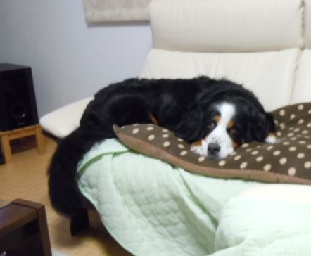 ここの所、あんこがしょっちゅう腹を下しておりましたが原因はどうも… 1 パルボの後遺症 2 自律神経失調症この二つが重なり合った結果でしょうとの事。確かに先週末にゲーリーした時は家の手直しであんこにとって始めての人たちがたくさん家の中を出入りしていた中で起こりました。その前の時は人馴れ犬なれの為に保育園に行った日の夜(次の朝だったか?)に起こりました。と、言う事は後遺症のゲーリーは早い段階で治まっていて後は自律神経がどっかに出張していたってことなのかあ、ちなみに我が家では(主に母ちゃんの実家)自律神経失調症を出張症と言っております。気分的に落ち込まない為なのか理由は定かではありませんが家族に症状が出ると「あ~また出張した~」なんて言っておりました。(でも、これはあくまでもうちだけですのでこれを読んで気分を害された方スミマセン。) 案外って言うかかなり精神的に繊細なあんこさん。家に来る前にそんな風になってしまう何かがあったのだろうか?でも今はもこ姉ちゃん・だいち兄ちゃん、お向かいのひまわり姉ちゃん、親戚のジュディ姉ちゃんみんな仲良しだよねだからこれからゆっくりあんこの気持ちのリハビリをしていく事になります。手始めに今度の週末に家族みんなでドッグランに行ってみますよ。みんな一緒ならきっと怖くないよね。 今日は雨。いつもよりは涼しいですね。でも、イヌタチは…すっかりエアコンに首ったけでございます。 もこもだいちもニンゲンもすっかりダラけております。部屋が涼しくないとカメラを向けても良い顔してくれません当たり前ですけどね~ コドモはやはり元気。何にも興味津々で逆に上手く撮らせてくれません。←ランキング参加してますもこをぽちっとお願いします。 さてさて、週末のドッグラン上手くいきますことやら…。やはり悩みの種が尽きない母ちゃんです それでは最後はやはりこの方に登場していただきましょう うん。やっぱりもこだね~