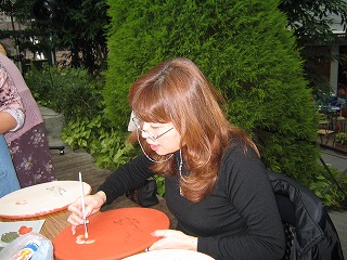 セミナーからは昨日の夜戻ってたのですが 疲れがどっとでて晩御飯を食べたらこたつで、片付けもせず うとうとしてました(*^。^*)「博多リバレイン」のセミナーには始めて行きました。中洲川端駅までは無事に予定通り着きました。標識通りに出口を出てエレベーターに乗り5階へ行ってると、前にいる人たちも同じ会場に行くような感じだったので「どこでしょうねぇ」とかお互いに話しかけるとその方がkimikoさんでした!思いがけないところで会えたのでびっくり! お連れの方がいたので3人で探して、会場に辿り着けました。 お連れの方は遊びに来ただけみたいで、kimikoさんと同じテーブルでセミナーを受けることが出来ました!ネットの方たちも来てたみたいだけど、分かりませんでした。。 11時になり、いよいよセミナーの始まりです。 最初は夕方の背景を描き、雲、カーネーション、額、・・・。今までの描き方とは違って道具はあまりいらなくて、面白い描き方でした。だいたいの方は、ほとんど仕上がったかな~って感じ。 私は当然のように残っており、あとはお家でゆっくり描きたいと思います。 ショートセミナーだったので、休憩時間がなくぶっ通し。緊張してたせいか、お腹が空いてるのを忘れていました。終わったら同じフロアの喫茶店でパンなど軽い物を食べて、お店をブラブラして帰りました。 仕上がりは、もう少し待ってね。