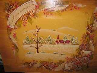 今日も少し暖かくて過ごしやすいです。去年から描いてたトールがやっと完成しました。 デザインは出口むつみ先生オリジナルカレンダー2005より11、12月です。去年のクリスマスに間に合わせたかったのですが、無理で、年越しで完成しました。まだ冬だから飾るには大丈夫ですよね? 実物は色が白っぽくなってしまいましたが、、、細かいところが多くて大変でした。 くまがいなおみ先生の「フラワーワールド」春ローズガーデンよりダブルローディングの薔薇はやっぱり難しくて、ほとんど修正が入ってます。あんまり近くでみないでね。 引越しするまで、ウエルカムボードでも描きたいなぁと思ってるのですが、描けるかなぁ(?_?)