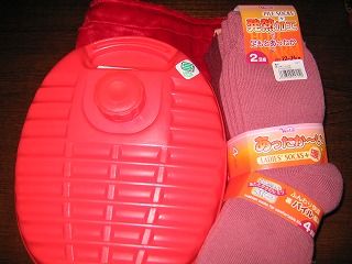 今日も寒かったです~今週は寒さが厳しいうえ仕事も忙しかったので、今日の休みが「やっと来たー!」って感じ旦那は7時頃起きたようだけど私は8時すぎまで寝てました 今日は食料品の買い物とホームセンターへ あったかグッズ 湯たんぽと靴下を買いました。 厚めの靴下は真冬の仕事には私には必需品ユ○クロのヒートテックのシャツと何枚かの服で防寒対策バッチリ職場は暖房器具はないので、これであと1・2ヶ月の寒さは防げるかな 湯たんぽは寝るときに使ってみようと思います。