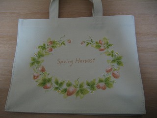 午前中はいい天気だったのに午後はだんだん曇ってきて雨が降りだしました。 天気予報は当たりました~ 風があったので洗濯物はほとんど乾いているようです。 出口むつみ先生通信講座 レギュラーコース NO8 イチゴのトートバック が完成しました~ 布には以前にエプロンにうさぎちゃんを描いた事あるけど、ちゃんと 描いたのははじめて! 描いてたら絵の具がにじんだり、はみ出たりして大変でした。 同じような絵の具を塗ってごまかしてますが。。。 葉っぱのドライブラシもどうかな~って感じです。 裏も描こうかなと思ったけど、イチゴ側が汚れたらイヤなので止めました。 今度は何を描こうかな。