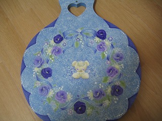 ペイントクラフト60号より くまがいなおみ先生の「パンジーのリース」が完成しました! だいぶ前に完成してたのだけどニスを塗ってなくて、出口むつみ先生の 通信で提出する課題も出来たので一緒にニスを塗りました 色は持ってないのがあったので似た様な色で描いてます だから発色も違うしDLが上手く行かないのでパンジーは何回も描きなおしました 素材も同じのがなかったので、このプレートで。 くまがい先生のベアーは久しぶりに描きました。 自己満足です