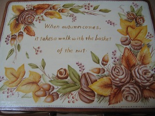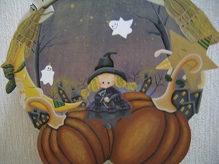 今日もお休みでした~。2階の部屋を少し片付けて部屋に飾ってある トールペイントを秋冬ものに変えました むか~し描いた作品でくまがいなおみ先生の デザインでハロウィンものです。 アパートなので完成した作品はどうやって飾ろうかいつも悩んでいます。