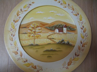 出口むつみ先生通信講座 マスターコース カリキュラムNO1 秋の風景が完成しました! 出口先生の通信もいよいよマスターコース! 描くのが今までより一段と緊張します~ 周りのダブルローディングは前の夏より上手になったかな ステンシルがちょっと叩きすぎたかも~。 他の場所を描いてるとき汚さないように気を付けました。 丸いプレート好きです
