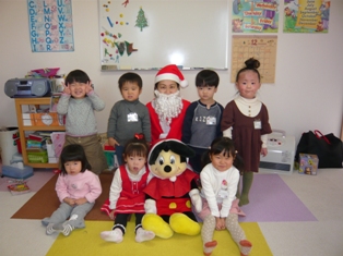 火曜日クラスについては先日更新したので内容は金曜日のみ書きますね。(画像は↓にアップしました)今日は普段とちょっと内容が異なるクリスマスレッスンでしたいつものミッキーもサンタの衣装をつけていましたね(笑)今日は7人のお子達とママとのレッスンでした レッスン内容 1~10まで数えるあいさつの歌Merry Christmas!The ABCsong MちゃんのHappy BirthdayWhat's your name?Roll call絵本We wish you a Merry Christmasの歌VOCA 動物カード 動物カードを使ってのBINGOゲーム M先生とJingle Bellsサンタさんからプレゼント今日は可愛い動物カードでお勉強したあとビンゴゲームをしました子どもたちが自分でカードを引いて皆に伝えました。3組がふわふわ絵本の賞品をゲットしていましたそしてM先生とかわいい鈴での歌の最中にかわいいサンタの登場(笑)子どもたちは唖然としていました(笑)最後にまた記念写真を撮りました。皆の反応が予想以上で良かったです(笑) 二人お休みだったのでこじんまりレッスンでした。 来週はいよいよ今年最後のレッスンですHave a wonderful Christmas