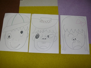 今日から木曜日クラスも始まりました最初からこちらの都合で開始時間を送らせていただきましてご迷惑をおかけしました。今年もよろしくお願いいたします5人そろって元気にレッスンができました レッスン内容 1~10まで数えるあいさつの歌先生とHELLO! (天気の確認)The ABCsong What's your name?roll call Q&AVOCA foods お友達に質問 → カルタ1-20の復習 ぬいぐるみを使って・・・The Good bye songお休みの間に英語忘れちゃってるかしら?と思ったのですがよく覚えていました「忘れないよ~~~!」の言葉に頼もしさを感じましたカルタになるとのんびりさんもビシッと背中を伸ばして取り組んでいます(笑)数の復習は単調にならないようにぬいぐるみを使って誰があてられるかわからないようにしたら効果てきめん!5人とも集中して発言していました福笑いは楽しかったようで大笑いしながらやっていました。最後に私が目隠しして行ったら、クククと笑いをこらえていたようです(笑)そしてはずして私のOh,no!!の反応に顔をくしゃくしゃにして笑っている子もいて可愛かったです SRくん・Kくん・Kちゃん作 SSくん・SOくん作