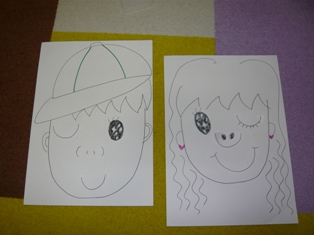 今年も5人そろってレッスンが始りましたお年玉をたくさんもらったとか、宿題はおばあちゃんの家でもやったとか、話題に尽きなかったようです(笑)今年もよろしくお願いいたします レッスン内容 1~10まで数えるあいさつの歌先生とHELLO! 天気・曜日・月・日にちの確認The ABCsongroll call Q&AVOCA 復習 → ホワイトボードに書いてみようVOCA 形・色・職業 のカルタ大会アクション椅子取りゲームLet's make a funny face!今日は最初のレッスンだったので復習を兼ねたゲームのレッスンになりましたEくんの「最高に楽しいんだけど!!」には笑ってしまいました良かったわ~皆汗かきながら楽しそうに取り組めていて見ていて微笑ましかったです(笑)カルタ大会はそのうち既習のカードを全部やってみたいと言われたので予定しています。教室いっぱいになってしまいますね~初めてやった椅子取りゲームも白熱しました(笑)言われたアクションをしながらまわり Sit down!で座るのですが見ている方が笑ってしまいました。福笑いは今年から目隠しをしてパートナーのお友達がeye mouth noseといいながら自分で選んだパーツを置いていく、というものにしました。笑いをこらえながら楽しくできましたね Nちゃん・Hくん 作 Eくん・Tちゃん 作 Cちゃん 作