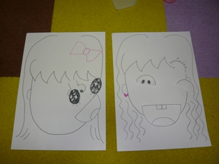 こちらのクラスも4人そろってのレッスンでスタートしました幼稚園生のあと数か月ですね。皆しっかりもののお姉ちゃんなので安心です レッスン内容 1~10まで数えるあいさつの歌先生とHELLO! 天気・曜日の確認The ABCsongRoll call Q&AVOCA 色と形の復習 先生に言われた形をホワイトボードにかいてみよう12 monthsの歌 (January February Marchの導入)フォニックス kLet's make a funny face!こちらのクラスでは女子の白熱ぶりは表面化せず(笑)、ゲームでもすごく静かな闘志を燃やしているようです(笑)じっくりと考えてからホワイトボードにかいていました。接戦だったので、いつもは見られないジタバタを足踏みしていたのできっと大興奮だったと思います(笑)定着にはもうちょっとかかりそうです。月の歌が始まりました。自分の誕生月に立ってみたりと体を動かしながら定着をはかっています。今日は三つ難しかったですが頑張っていました福笑いは、年長さんクラスなので目隠しをして行いました。パートナーのお友達が、eye mose mouthと言いながら渡していました。クククと笑いをこらえていたのがとっても可愛かったです Aちゃん MIちゃん 作 MOちゃん MEちゃん 作