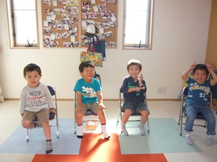 いよいよ今日から年少さんクラスが始まりました本来は6名のクラスですが、KIちゃん、KOちゃんの諸事情で来月より女の子チームが来てくれます。楽しみだなぁ~3歳児BOYSはホントに目を輝かせながら椅子にちょこんと座り、まだお互いを意識することもなく(笑)ただひたすら私に熱い視線を送ってくれていました。ほんっとに可愛くて可愛くて レッスン内容 私の呼び方の練習1~10まで数えるあいさつの歌アクション先生とHELLO! 天気の確認The ABCsong What's your name?roll callVOCA 色 カラーハント → ボーリング遊び (色と数字の確認を取り入れる)絵本Head Shoulders Knees and Toesの歌入会のささやかギフト選び This one, please.The Good bye song4人ともMommy and meからの持ち上がりなのでレッスンの段取りも把握していて何の違和感なく始めることができました説明もいらないのでとってもらくちんでした(笑)歌ではDが大きな声で歌ったのを私が大げさにリアクションしたからか盛り上がってしまってみんな大爆笑しながらの歌でしたボーリング遊びではきちんと倒した数や色を英語で伝えられましたガーターになるとこれまた皆で大笑いでした。何から何まで一生懸命に集中して頑張ってくれたので100点満点です画像は一番最初の瞬間です♪ これからこちらのクラスが始るにあたり、ママさん達にはたくさんのサポートをして頂くことになりますがよろしくお願いいたします。兄弟で通って下さる方は送迎も二倍になりますし赤ちゃんを連れての送迎も大変です。お子さんたちが教室に来て楽しく学べて英語がすき!が続くよう私も努めます。何かご相談などがあったら気軽にご連絡してくださいね。