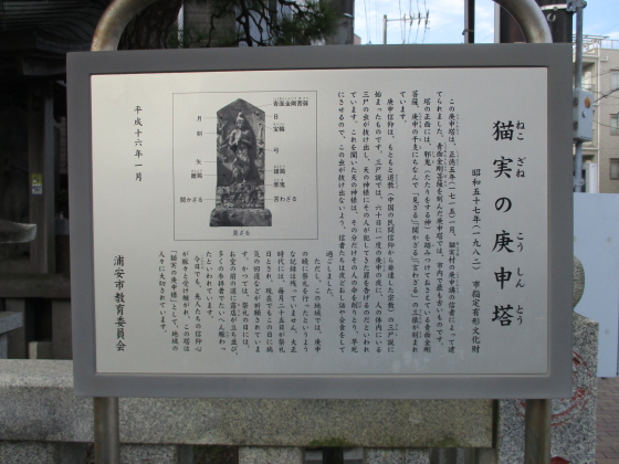 今日でも、先人たちの信仰心が脈々と受け継がれ、この塔は「猫実の庚申様」として、地域の人々に大切されています。