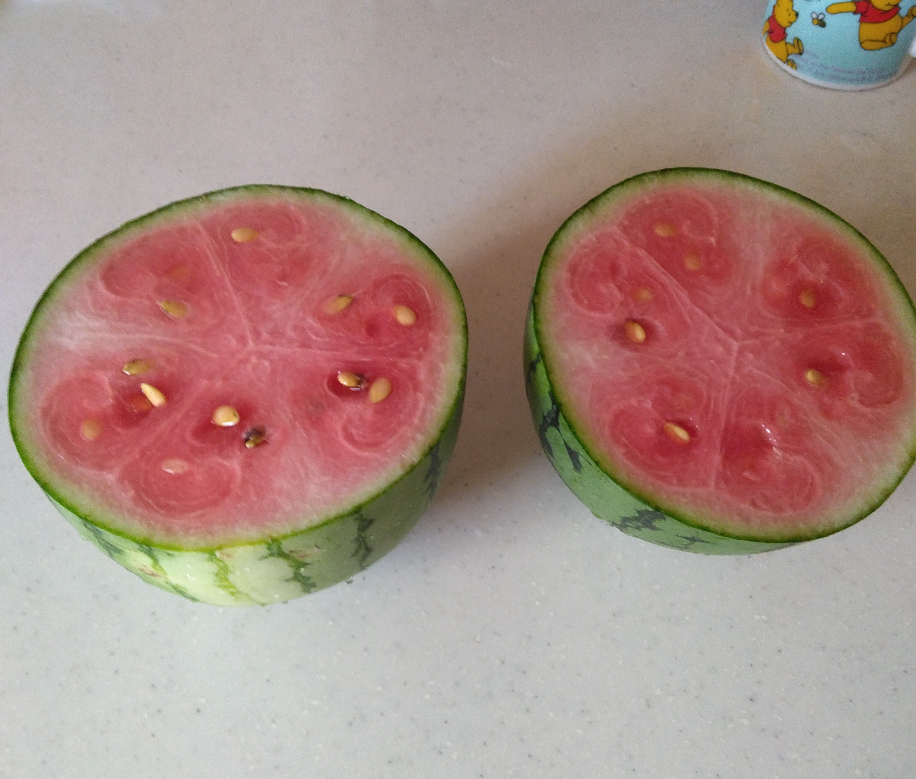 昨日 ここに来て初めてハエが侵入したアパートでは台所からベランダに出るところに外付けの網戸をしていたが 隙間もあるベランダへの出入りも多いので気を付けていても侵入はあったが ココは網戸の目が細かいしあらゆる外との接する所は専用の網戸が組み込まれており 今まで心配をする必要がなかったが 昨夜 網戸をし忘れていた窓が1ヵ所(カーテンで気付かなかった)そして 窓の開閉時にどうしても外とフリーになってしまう何が悪かったのかハッキリとは分からないが 寝ようとした頃 キッチンの流しにハエがくつろいでいた突然の事で 叩かなきゃが遅れ 何で と探し回っている間にヤツに気付かれて逃げられた広くなったので探すのも大変天井の木目がすべてハエに見えてしまうし 今日のお昼に 数度のチャンスを逃しまくってやっとお縄に何度か身体をかすめたのにシブトイいや 私が鈍くなったのかもしれない 夏はおやつにスイカをたらふく食べようと 小玉スイカを植えた最初の苗は育たず 2本目の苗がなんとか伸び続け 1個の実をつけていたが いくら待っても市販されているような大きさにはならないいつが収穫時なのか分からず そのまま放っておいたら やっと降った雨が影響したのか割れてしまった割れた西瓜は 土で汚れて食べようとは思えなかったが赤く食べ頃もっと早くでも良かったのか・・・1個目の西瓜の食べ頃を思案していた頃 2個目が大きく育ってきた大きさは1個目と同じ位になったような気がするし また食べ損ねたら悔しい1個目ほど時間が経っていないが 食べてみることにした残念 やっぱりまだ早かったか・・・黒い種が少ないし 甘くもない亀子の肥料を蒔いたから今頃になってどんどん伸びて3個目が成長中赤い 甘い西瓜が食べたいなぁ