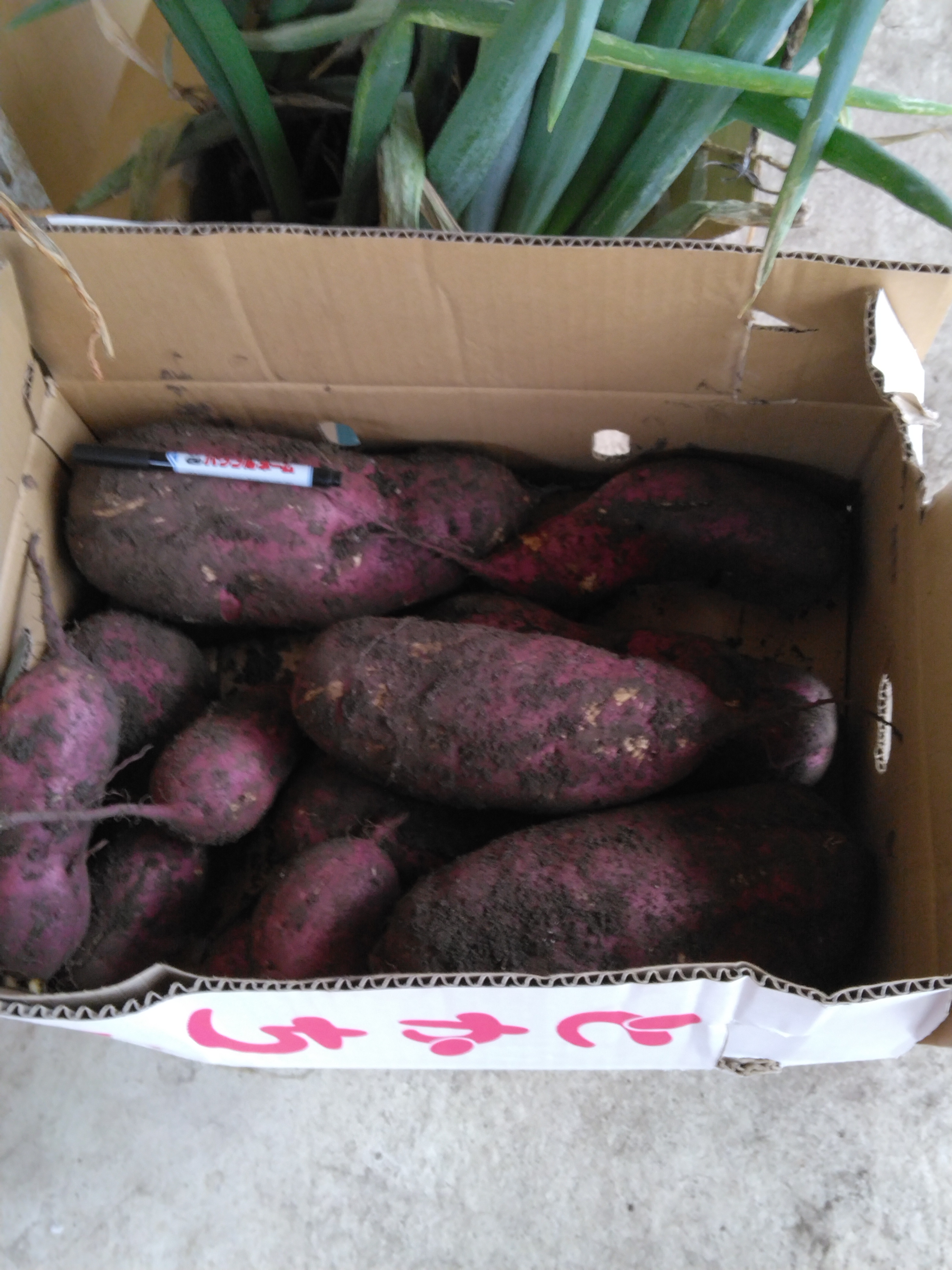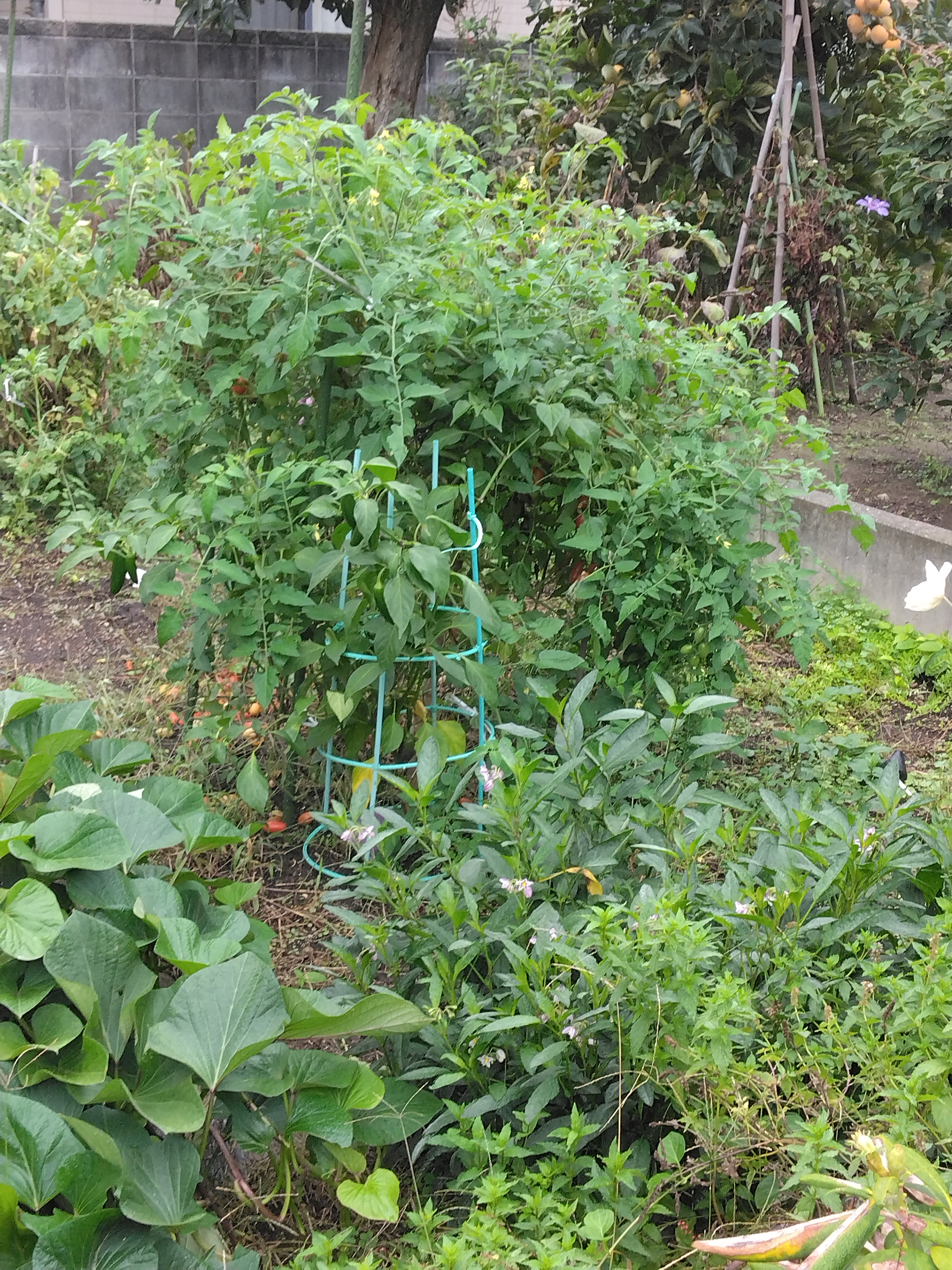 初めての畑は学ぶことが多いスイカから伸びていたカボチャは 花は多かったが実になることは無く 葉っぱが真っ白になって枯れてきたその傍に ちゃんとカボチャを植えていたが一向に実がつかず高温だとそんなものらしいので諦めていたが 少し猛暑が収まって雨も降ったら実が付いていた手の平より小さな小さなカボチャもうひとつ指先のようなのが付いているが この寒さ 無理だろうなぁ サツマイモ この家庭菜園の一番の目的寒くなっても葉っぱが青々と 畑を占領する勢いで伸び続けているふと地面を見ると サツマイモが飛び出ているビックリして 昨日二個掘り出して 夕飯で天ぷらにでもしようと思ったら割ってみると 中が一面真っ黒もちろん そういう種類ではない 根っこの方は綺麗なのだからご主人様は掘ったのか聞いてみると 葉っぱが枯れることは無いし 何の品種なのだという私は品種など覚えていないけど 有名なヤツだったというと 紅はるか というからそうだったかも・・・と答えると 紅はるかは彼岸の頃が掘る時期だともう一ヵ月も過ぎている 一声掛けてくれたら良かったのに調べてみたら低温障害・・・ 冷えちゃったのね今のところ二個のうち二個がダメ残りを午前中掘って 見事な大きさのものもあったが 割ってみないと・・・全部ダメだったら 悲しいなぁこれまでトマトはプランターに植えた事しかない畑に植えるとこんなに育つものなのかと 今更ながらに驚いた暑さが和らいで 雨も降って 育ちやすい環境になったのだろうけど すごい枝が四方八方に伸びるが 急に冷え込んで 大きいトマトは 実がついても赤くならないし ミニトマトは次々に赤くなるが入り組んだ迷路のような枝の中に実がつき モスキート音も聞き取れないのに 蚊取り線香をぶら下げても顔の周りを虫がブンブン羽音を立てて飛び回るちょっと触れるとボタボタ実が落ちるし 落ちた実が汚いだから 思い切って掘ってしまうことにしたすると 根元から・・・あれっこれってジャガイモそう思って取り出したら根元からジャガイモ・・・二期作だわ今回サツマイモの飛び出しを見つけたのも 掘り残していたジャガイモが心配で掘ったからすると 案の定 土の中の芋さんには芽が出ていた加えて トマトを掘り出したら急にキーマカレーを食べたくなり ルーを買いに行ったらトマトも必要だというトマトを処分する前に食べれば良かった