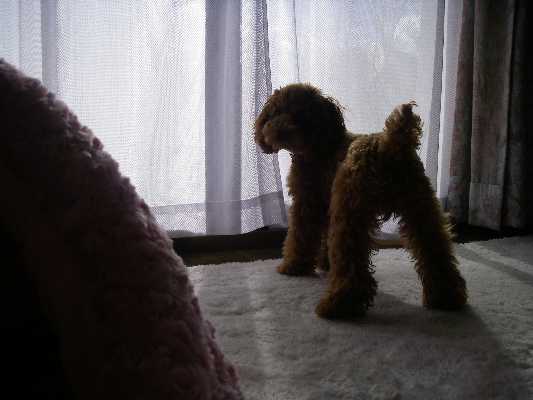 この間は灯油の移動販売の車が灯油缶に入れているところをオスワリして“ジーッ”と見ていました。何でそういうことが気になるのかわかりません。しょんぼり