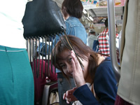 バグズ、MASASIさんのWSに行ってきました。行きの電車の中で、大きさのわりに下のビラビラが長い(ウエスタン調のような)カバンを持っている人がいて、電車が揺れる度にビラッときてじゃまだったんですが、そのビラビラで「いらっしゃいませ~」と遊びながら行ったので、すぐ大阪まで着きました。カバンの持ち主も写真撮って遊んでるのに全然気付かなかったんです。ま、そんな話は置いといて。大阪から地下鉄で阿倍野へ。今回は2回目のWS。レッスンが始まってストレッチの1曲目の曲が、今月Fで踊っている曲だったんで、びっくりしました。これ→like i love you慣れないストレッチをしたので、現在、筋肉痛に襲われています。なぜか首の後ろがめっちゃ痛い~それからウォーキング。ターン系でした。最後にコンビネーション。手首を回す振りが多かったので、手首に気がとられてなかなか足の動きが出来なかった。必死のパッチ(死語?)で踊りました。終わった後はかなりの充実感写真も一緒に撮って頂きました。そして天王寺でを飲み、暇だったんで、三宮でウインドウショッピングして帰りました。楽しかった~。WSはまる~。