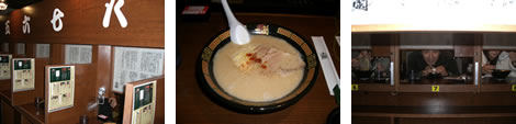 PCが調子悪くて書くのが遅くなりましたが、セミナーで福岡に行ってきました。今まで行った記憶がないので、多分初福岡です。新幹線で12時頃到着、お昼ご飯に有名なラーメン屋さんの「一蘭」に連れて行ってもらいました。聞いていた通り、1人ずつ仕切られているので孤独に食べなければいけません。まず食券を買って、空いている席にそれぞれ座り、スープの辛さや麺のかたさなどを記入用紙に○印を入れて渡すとラーメンがきます。とーぜん福岡なのでとんこつです。でも、とんこつのわりに後味があっさり。辛さは普通に○をしましたが、結構辛めでした。 一緒に行ったmarvinさん(画像右)がたまたま向かいに座り、卵の殻むきに悪戦苦闘中の写真です。いつまでむいとうねん。とツッコミたくなるぐらいむいていました。そのあとセミナー。そしてすぐ懇親会。自分で魚を釣って食べれる居酒屋さん(店の名前は忘れた)に連れていってもらいました。私は残念ながら釣れず、他の人が釣ったヒラメを食べましたが、おいしかったじょ~。最後にそのヒラメのヒレ?骨?を揚げてくれたのが一番おいしかったです。 そして最終の新幹線で帰ってきました。 お世話をして頂いた方々、どうもありがとうございました。セミナーには鹿児島から高速バスで3時間もかけて来て頂いた方もいて、参加者全員に少しでも何か気付きがあればなぁ~と思います。でもすでに変化があったというメールも頂いているようで…今度は名古屋です。100%思いどおりになるセミナーin名古屋
