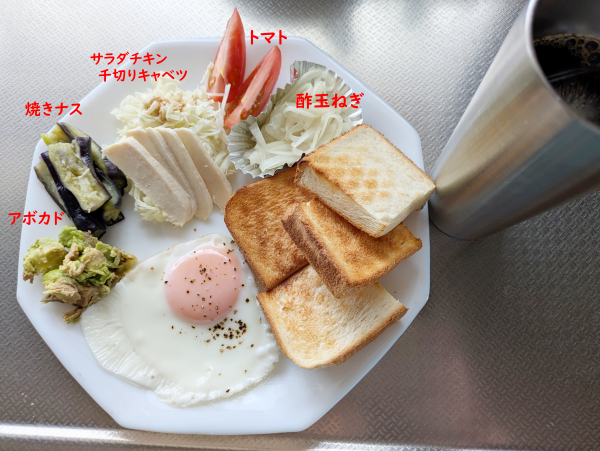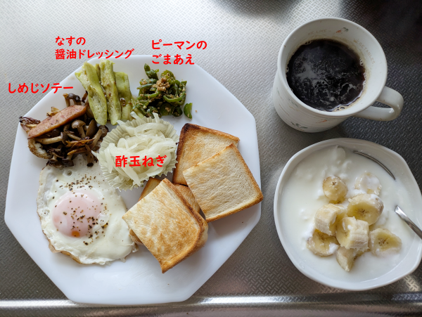 今日も朝からすっきりさわやかに晴れました。思いっきり秋を感じています (^O^)/朝ごはん。トースト、目玉焼き.. 他。 アイスコ―ヒー。今朝もいろいろ食べました。(*^-^*)ちまたでは大人気のサラダチキン。コスモスで3パックで218円(税込)と安かったので 安くないと買わない私今更ですが初めて買ってみました。結構、味がついていてちょっとびっくりです。サラダチキンってただ鶏肉を蒸しただけで味はついてないと勝手に思い込んでました。これならドレッシング無しでも全然平気♪美味しかったです(*^-^*)お昼ごはん。簡単にスナックサンドの「大人の明太ポテト」これ!お酒のおつまみにもなりますね。明太子がピリリと効いて美味しかったです。ジャガイモ、ちっちゃいのが2~3個コロンと入ってました。我が家のなす!まだまだ元気よ~!大小合わせて20本くらいはまだ実ってる。しばらくは収穫は続きそうです。まあ 毎日食べてるけどね。。***スズキの「愛車無料点検」が11月末までやっててもちろん、今回も点検してもらうつもりだけどさて!冬タイヤへの交換をどうしよう!替えるんなら11月末だけど。。例年なら、車通勤に必須なので必ず冬タイヤに交換してたけど今年は無職だしね、積雪の時に車に乗る?多分、乗らないよね、だって乗らなきゃいけないこともないし。・・・でも、万が一のため替えとく??と、迷っております "(-""-)"だって交換工賃・1本750円×4本 計3,000円が冬前と春先の2回で6,000円(税別)となるわけで無職には痛い出費。。 変なとこがケチな私。んんん... 悩ましい。。"(-""-)"最近、家のあちこちで勝手に咲いてるニチニチソウ。本日も長い記事にお付き合いいただきありがとうございました猫ブログも書いてますブログ村の3つのランキングに参加してます 応援のクリックをお願い致します