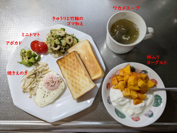 今日は晴れの予報だったのに全く晴れず、一日中曇り空残念なお天気となりました。朝ごはん。トースト、ベーコンエッグ..他。今朝も美味しく頂きました。(*^-^*)お昼ごはん。 いつもの雑穀米で3合炊きまして・・雑穀米おにぎり.. 他。赤だしのお味噌汁(豆腐、わかめ、えのき、キャベツ)いつもは、米:雑穀米 2.5:0.5合だけど今回は雑穀米多めで、2:1合にしてみました。噛み応えもあって美味しかったので、次回からもこの比率ね。雑穀米は私しか食べないので白米用の炊飯器でなく土鍋で炊いてます。余ったのはおにぎりにして冷凍~!***我が家の柿の木。先日まで渋柿を収穫していた2本の木とは別に甘い柿の木もありまして・・・これも今年は大豊作!この木は数年前に上の方を伐採したのでその後、生えてきた枝はなぜか?しだれ枝となっていてこんな風に狭いところにびっちり実ってます。低いところに実ってるから収穫しやすいし柿は好きなので喜ばしいんだけどね。早朝ウォーキング後に今日の分を収穫。朝、昼にいただきました。美味しいから2~3個は食べられるけど糖分多いから考えながらいただいてます(*^-^*)本日も長い記事にお付き合いいただきありがとうございました猫ブログも書いてますブログ村の3つのランキングに参加してます 応援のクリックをお願い致します