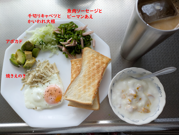 昨夜から結構な雨が降りましたが早朝には、やんでいたので元気にウォーキング!最近、歩き方を変えまして・・・今までより早足で歩幅を広めにして歩いてます。腰痛、足のしびれなどは相変わらずだけど朝は割と無理がきくようで目標の5,000歩以上歩けてます。(^O^)/朝ごはん。トースト、目玉焼き.. 他。ドライマンゴー入りヨーグルト、アイス・カフェオレ。ヨーグルトは自家製。≪ポイント3倍★20日23:59迄≫ヨーグルトメーカー IYM-014ヨーグルト...価格:3,900円(税込、送料無料) (2025/10/15時点) ちゃんと真面目に使ってますよ~ 最近はこのヨーグルトと牛乳を使用。 150ccの牛乳は取り出して150gのヨーグルト(2パック分)入れてよーくかき混ぜて、9h、42℃でスイッチオン! 9時間後完成~!でもちょっと水っぽいヨーグルトなのよね。ドライマンゴーを一晩入れておくとねっとしりた好みのヨーグルトになるけどなんでだろ?・・とGeminiに相談してみたら私が使ってるのは「牛乳」じゃなく「乳飲料」だった。。「あじわい便り」、180円くらいで安いから買っていたけど乳飲料だから安いみたいね。次回から牛乳、買います。「え?なんで今更?そんなこと言ってんの?」と思うでしょ。。私、牛乳は好きだけどお腹が緩くなっちゃうので自分で買うことが今までほぼ無かったのですよ。なので全然、気にもしてませんでしたwお昼ごはん。期限切れの非常食(1/2袋)でお鍋で作る・・・白菜たっぷり卵ぞうすい。はい、これで期限切れの非常食、全て食べ切りました(^O^)/ベゴニア 夏の花と言ったらこれだけど 今年は暑すぎたせいか今の時期でもまだ咲いてます。猫ブログも書いてますブログ村の3つのランキングに参加してます 応援のクリックをお願い致します