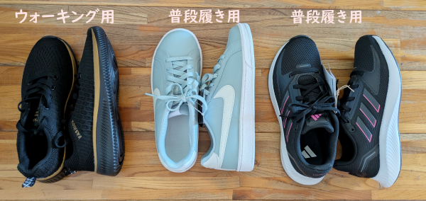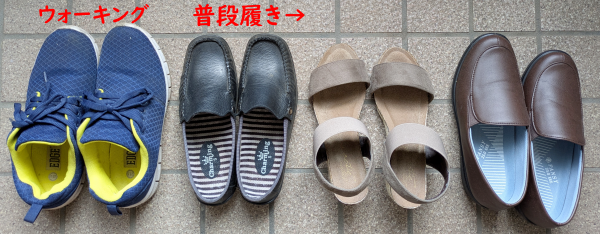 ウォーキング用と黒の普段履きは履きつぶしました。