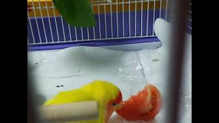 仕事から帰ってくるとウチの子達が出迎えてくれる。 オカメインコの もも と コザクラインコの こっぺちゃん。出迎えるといっても放し飼いではないのだが。。。あ、キタ。みたいな目で見て来るのだ カワ(・∀・)イイ!!カワ(・∀・)イイ!!癒される~ (*´ρ`*)疲れも吹き飛ぶ~(多少。) 今日はこっぺちゃんの好きなトマトをあげたよ。 小さい声で「おいしぃ」っって言ってんだけどスマホじゃ音拾えなかった(^^;)家で美味しいって言ってくれんのは こっぺちゃんだけなんだよね。。。(TwT。)
