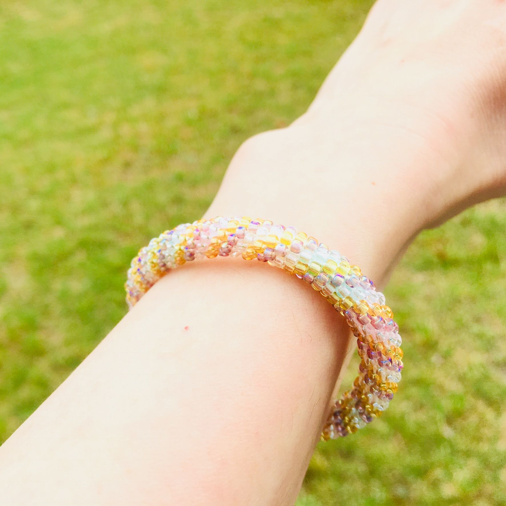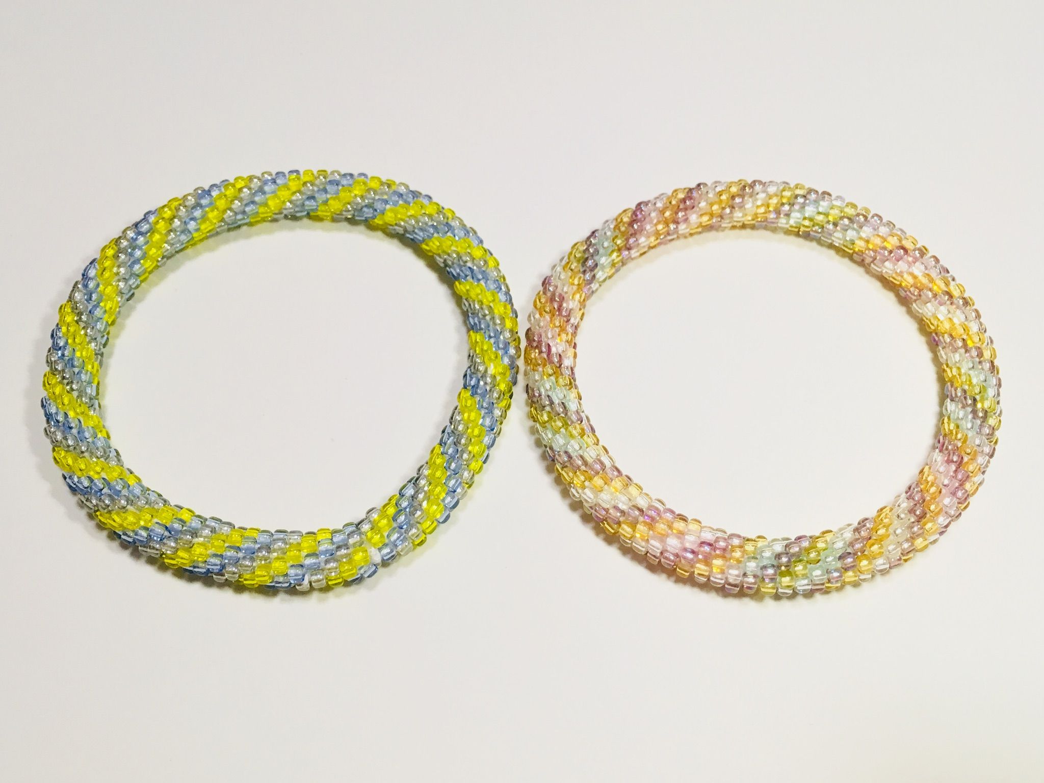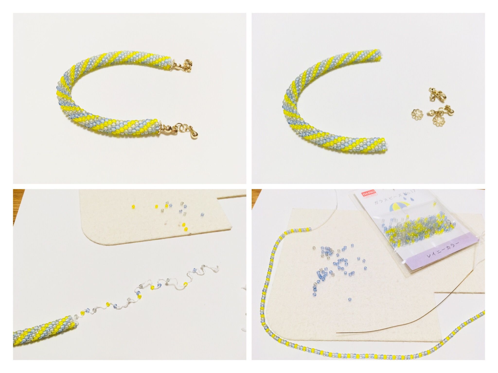 1本目のも金具をカットして、追加ビーズで編み直し、金具なしバージョンに作り替えてしまいました(笑)