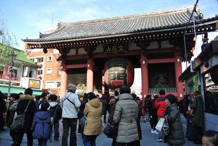 こんばんは 浅草にある浅草寺(せんそうじ)に初詣に行きました。毎年1月下旬の週末に私達夫婦・両親・弟の5人で行くんですが、混雑を避けて初めて平日に行きました。東京は雪は降らなかったんですが、両親の住む千葉は、この前の雪よりも積もったそうです。 風は強かったですが、東京は良いお天気でした。 雷門 雷門の裏側ここから仲見世 いつもこちらの甘酒を飲みますまだお正月ムードが漂う仲見世犬猫用のかぶりモノも売っていますこの先に本堂があります。 浅草は外国からの観光客が多く訪れます。その中でも、中国人観光客が多かった気がします。 本堂扉の飾りです。本堂の向かって左側出口で撮影 私のおみくじは半吉でした、因みに父は「吉」、旦那さま・母・弟は3人とも「凶」でした。大丈夫か?この家族・・・・ 浅草寺のおみくじは7種類あって1番から100番のくじの割合を調べたら、大吉17・吉35・半吉5・小吉4・末小吉3・末吉6・凶30浅草寺は凶が多いとされています。 有名な撮影スポットからパチリ 後編につづく ・・・ 次回予告「イタリアンレストランでコースランチ」下の写真のアサヒビールタワーの泡の部分にあたる22階の展望レストランでランチ、東京スカツリーも撮りました。 あまり眠らず出かけたので家に帰って、うたた寝しちゃいましたが兄からの電話で起こされました北海道からの帰りでお土産を持って来ました。3つあるのは、我が家・実家・弟夫婦用 このようにいつも預かっています。一日早ければ今日渡せたのに残念。北海道で今一番人気のあるお土産と言い残し帰って行きました。北海道にお住まいの皆様、それは本当ですか?おかきは甘いトウモロコシの味がし、フリーズドライのトウモロコシも美味しく これを嫌いな人はいないと思います。 ご訪問ありがとうございました