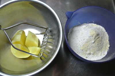 メニュー表示問題は広がりを見せていますが利益の為にと悪質なものは詐欺と思われてしまいますね。人間関係もそうですが、一度失った信用は取り戻すのはとても大変だと思います。 今日の手作り料理 じゃがいも(品種、産地不明w)・強力粉・粉チーズ・塩・白胡椒 さて何でしょう?ヒントはイタリアン料理です。 レンジで加熱したじゃがいもをマッシュし、粉類と混ぜ合わせます。実はこの時点で固まらないのでじゃがいも追加し粉も様子みて追加しちゃいました。最初じゃがいもと強力粉同量にしたんですが割合を3:2くらいでじゃがいもが多い方がいいようです。水は入っていません。 こねて棒状に伸ばして切って丸めて・・・写真ないですがこうなりました。答えは、 じゃがいものニョッキです。形は適当でフォークで模様付けてあります。じゃがいもは裏ごしした方が滑らかになると思いますが時間短縮で潰しただけなので粒が見えます。 少し塩を入れた熱湯でニョッキが浮くまで茹でます。大き目に作ったので5分以上茹でたかも。 前日の残りのトマトソースをかけて生クリーム(ミルクポーションでも)粉チーズ掛けて完成。 これ、かなりお腹に溜まります。トマトソースの酸味がよく合いとても美味しかったです。じゃがいもをかぼちゃに替えてハロウィン料理に如何でしょうか?薄力粉でも大丈夫だと思います。 今日は仕事が忙しかった2人ですが、 明日30日は夫婦別行動です。私は手土産持って日帰りで実家に行って来ます 旦那さまは家で仕事で夕方は出版社で打ち合わせ、そして夜は友人達と食事会。 私も知っているメンバーで誘われたんですが、実家の予定を先に決めてしまったので今回パスします。店はジンギスカン屋さんなのでこれがメインが選べてドリンク・サラダ・デザートバーがあるシズラーという店なら行けなくて残念って思ったかも(^_^;) 手土産木村のかきもちさんで購入の品この中にないですが私は「ねぎみそもち揚げ」と「かるもち久助」がお気に入り。 手芸は、何作るか考え中ですが羽織るものにしようかと本見ています。 ご訪問ありがとうございました