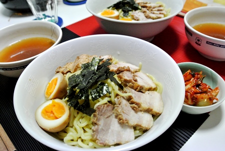 前回つけ麺にした時はチャーシューなしでしたがやっぱりありの方が美味しい(*^_^*) 麺はいつもの「つけ麺専用中華麺」を使用 チャーシューは圧力鍋で作りました。美しいデザインで料理が楽しくなるフィスラーの圧力鍋数限定 送料無料 ガラス蓋・蒸し器・三...価格:17,200円(税込、送料込) 前に使っていた圧力鍋は30~40分くらい加圧していましたがこの圧力鍋は優秀で加圧12分程で軟らか~い、煮豚ができます。 豚バラブロックの余分な脂をとりたいので熱湯でサッと煮てから煮崩れ防止でたこ糸で軽く縛ります。青ネギと生姜と塩と水を入れて火にかけます。加圧12分後に圧が抜けるまで自然放置。 肉だけ取り出してタレで煮ます。この煮豚の汁はつけ麺のスープになるので捨てずにリードクッキングペーパーでこします。 醤油・砂糖・鮭・水を煮立たせた中に肉を入れて5分程煮ます。 容器に移して漬けこみます。茹で卵はつゆと一緒にビニール袋に入れ時々混ぜて味玉にします。 つけ麺のスープは煮汁・チャーシューのタレ・鰹だしの素・鶏ガラの素・煮干しの粉・すりおろしにんにく・ごま油・塩・胡椒・酢家で食べるのでつけ汁が冷めたら追加できいつでも温かいつけ汁になるので美味しいです(^^♪ おまけ 画像卵型の顔ってこんなの? 旦那さまが寝る時に首が寒いと言うので昨年フリースで作ったお休みマフラー出しました。 これを首に巻きマスクして寝ています。 ご訪問ありがとうございました(*^^*)