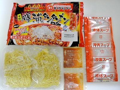 今年のB1グランプリの銅賞に輝いた 『勝浦タンタンメン(千葉県)』 日清食品さんの生麺のセットを遅めの夕食に頂きました。 ブログに写真を貼って気付いたんですが「勝浦」と「タンタンメン」の間に小さく「風」って文字が入っています(^_^;) 別途具材は2人分だと豚挽き肉60g、玉ねぎ1個、トッピングの長ねぎが必要です。 肉増量して120g使いました。 付属の調味オイルで挽肉と1cm角に切った玉ねぎを炒めて水800ccを入れ沸騰したら麺を入れて2分間茹でます。火を止めて液体スープを混ぜたら完成。 醤油系のスープにラー油たっぷり入った真っ赤なラーメンです。玉ねぎで少しマイルドになり美味しく頂きました。238円で購入しましたがフライパン1つで出来るので簡単です。旦那さまは気に入ったようでスープまで飲み干しました。 今日もう一つ『勝浦タンタンメン』食べています。 エースコックのカップ麺 128円で購入 こちらは「風」とは書いてありませんw具は長ねぎと玉ねぎ入っています。肉は?熱湯を注いで4分後液体スープを入れます。肉は? これは旦那さまの夕方の食事です。一口頂きましたがこれは辛い。 肉は入っていないのかと思ったら旦那さまが言うには「それらしきものが底に沈んでいた」との事です。 私は夕方、酸辣湯 “風” 春雨を食べました。 酸っぱ辛いスープに春雨と溶き卵が入っています。実はこのスープ 前日のチャーシューのタレをアレンジしたうどんの汁の残りを更にアレンジした物です。水・ごま油・鶏ガラスープの素・酢・ラー油が入りました。 これでスープ終了です。 ストールを作ろうと思うんですが 水通しして干した生地をカットしただけで進んでいません。 在庫処分の大幅値下げ商品で綿のダブルガーゼ2m 357円で購入。リンクを貼ろうとしたら売切れでした。 長さはそのまま2mで幅を悩んで40cmにしました。 サイドを三つ折りミシンを掛けて両端の始末は横糸を抜いて10cm位フリンジにします。 ご訪問ありがとうございました(*^^*)