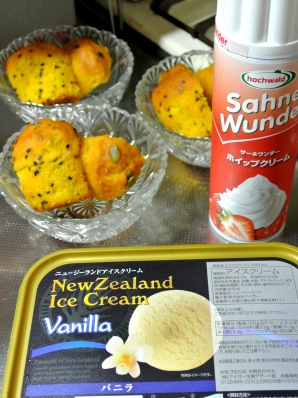仕事の打ち合わせで来客がありました。事務所を別に借りていた時もありますが今は自宅兼仕事場なので便利な反面来客が多いです。 東京ドームのすぐ近くに事務所があった時は日曜日の昼間だとベランダから東京ドームシティーのヒーローショーの走って階段昇って移動している裏側が見えました。それとジェットコースターの音や悲鳴も聞こえて何だか面白かったです。 お客様から手土産でドトールのパンプキンとスイートポテトのマフィンを頂きました。2種類のマフィンにバニラアイスと缶入りのホイップクリーム盛りました。マフィンは軟らかいので温めませんでしたがどちらも美味しくてこのマフィンのレシピ知りたいです。 お客さまは4時間位でお帰りになりましたが、飲み物のメニューを貼っているのでオーダーがアイスソイラテ・コーラーレモン乗せ・お茶を飲んで行かれました。旦那さまも私もそれぞれ違う飲み物なので何杯用意した事か・・・今日の私はウエイトレスか秘書でした。 夕食は3食入りのマルちゃんの焼きそば 具は豚肉・小松菜・キャベツ・もやし・ぶなしめじホクトのぶなしめじ半株使いましたがホクトのCMちょっと面白い 3人前ですが、私があまり食べなかったので残りました。 それは焼きそば作りながら茹でたブロッコリーを摘み過ぎたから・・・冷めてから冷凍するつもりでしたが1/3くらいマヨネーズ付けて食べてしまったかも。 深夜の手芸 ボレロの型紙の続きを作り重ねて寸法調整まで終わりました。裁断する前に先にこっちをやりました。 前日作ったのはフリース素材でしたが解いてサイズを縮めるのは返し口も閉じているし面倒なので素材を合皮と綿生地に変更し2作目を作りました。 内側もオレンジ色で他の袋と同じシリーズになりました。口金じゃなくて巾着と言う事なのでこの後口部分を縫って紐通したら完成しますがミシンで縫い辛そう・・・ ご訪問ありがとうございました