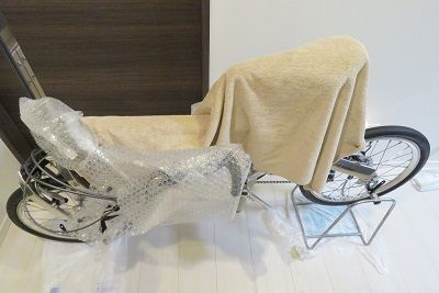 ハンドルとペダルにはエアー緩衝材巻きました。