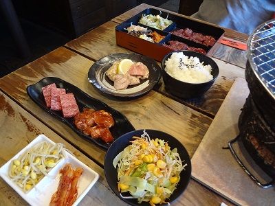 私のセットはサラダ・ナムル・カルビ・鶏もも・