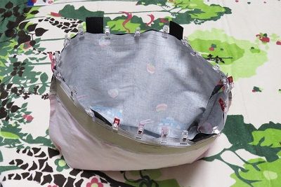 ピンク色の生地は接着芯を貼ったオックス生地です。