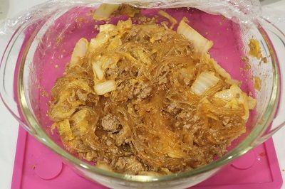 白菜から出た水分を春雨が吸って