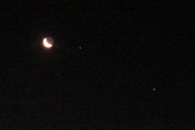 月の右側の点はおそらく火星で