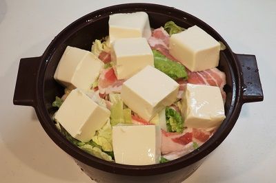 その上に白菜の葉の部分と豚バラを重ねて