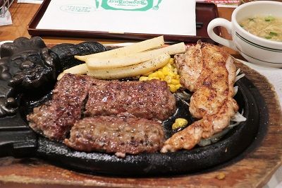『炭火焼粗挽きハンバーグとチキンステーキランチ』