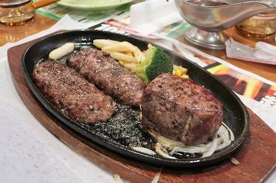 『炭火焼粗挽きハンバーグ&ウルグアイ産超厚切り熟成サーロインステーキ』