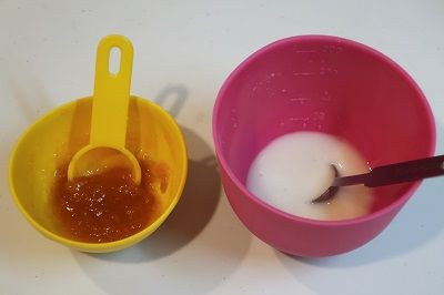 冷めたらレモン汁&砂糖をよく混ぜたものを掛けます。